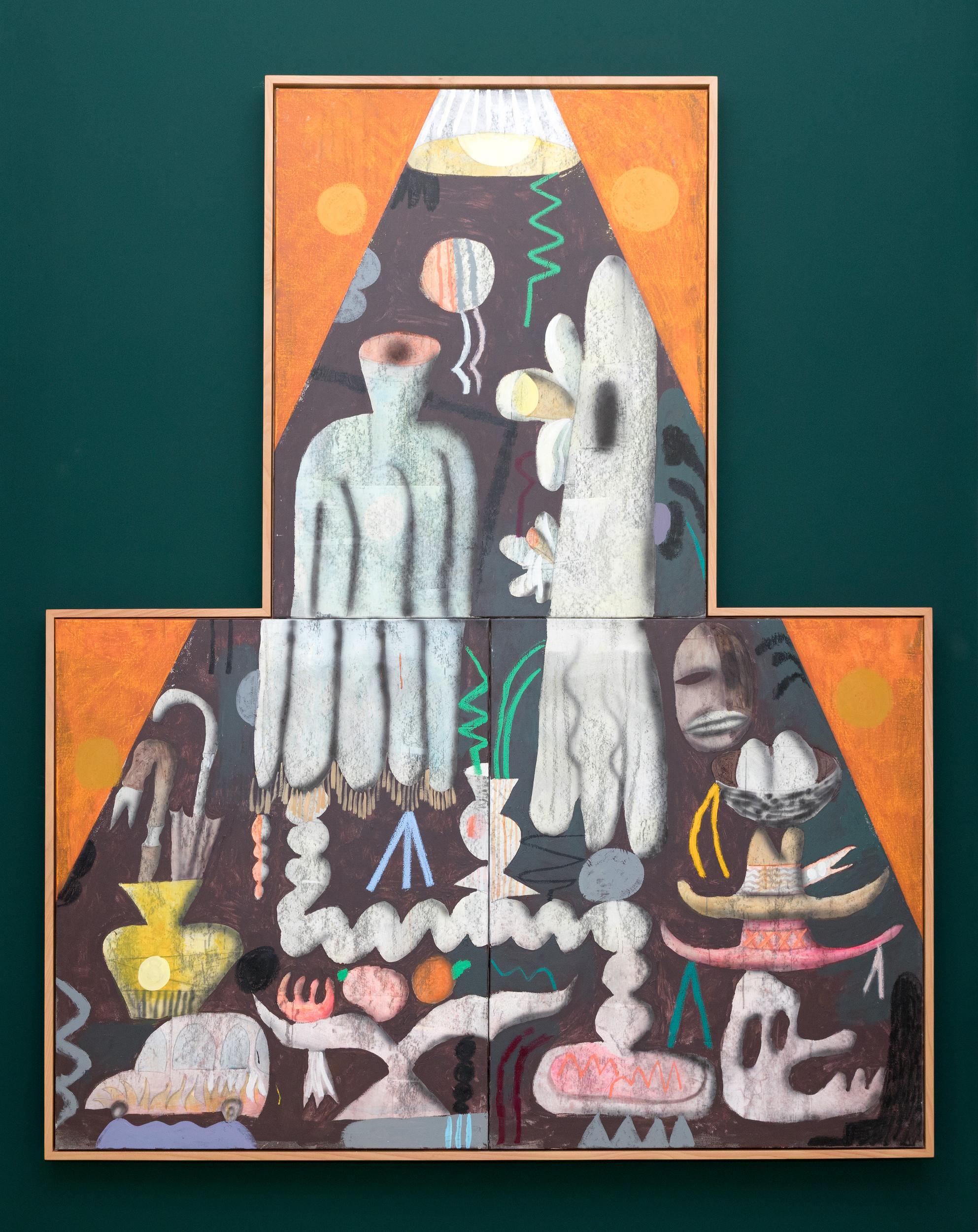 oil, acrylic on canvas, artist frame