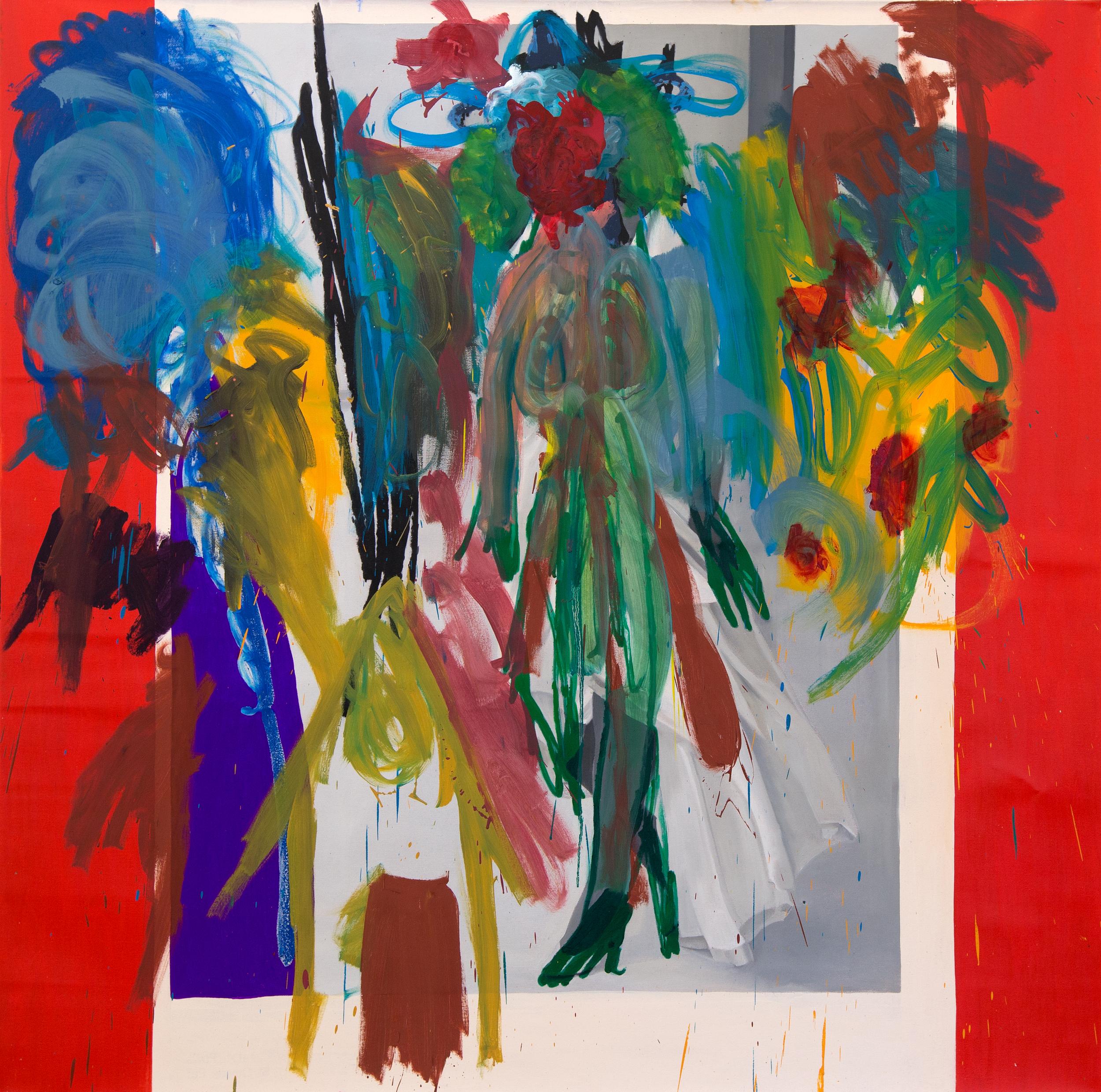 oil, oil crayon, acrylic, pastel, gouache, marker and gesso on canvas