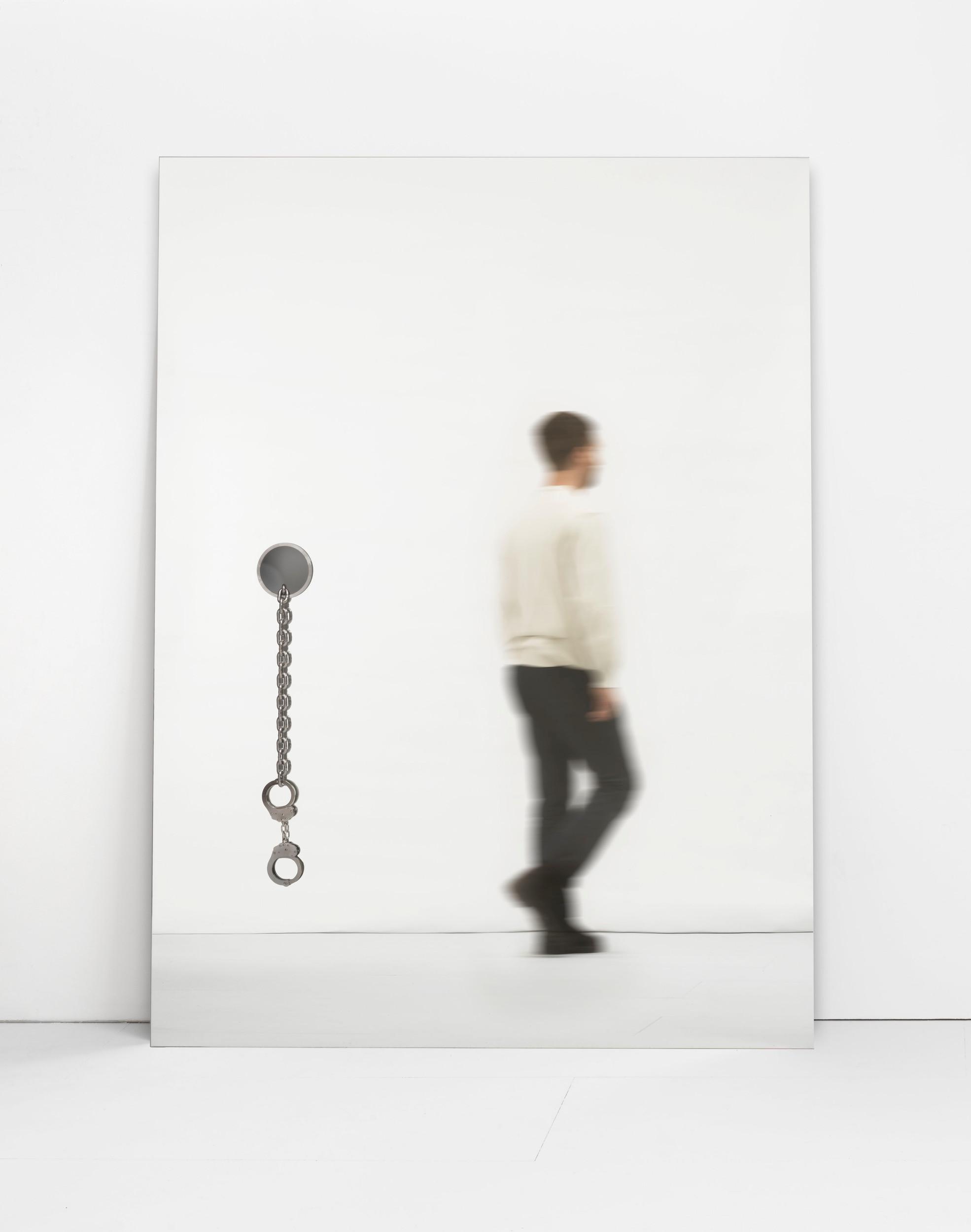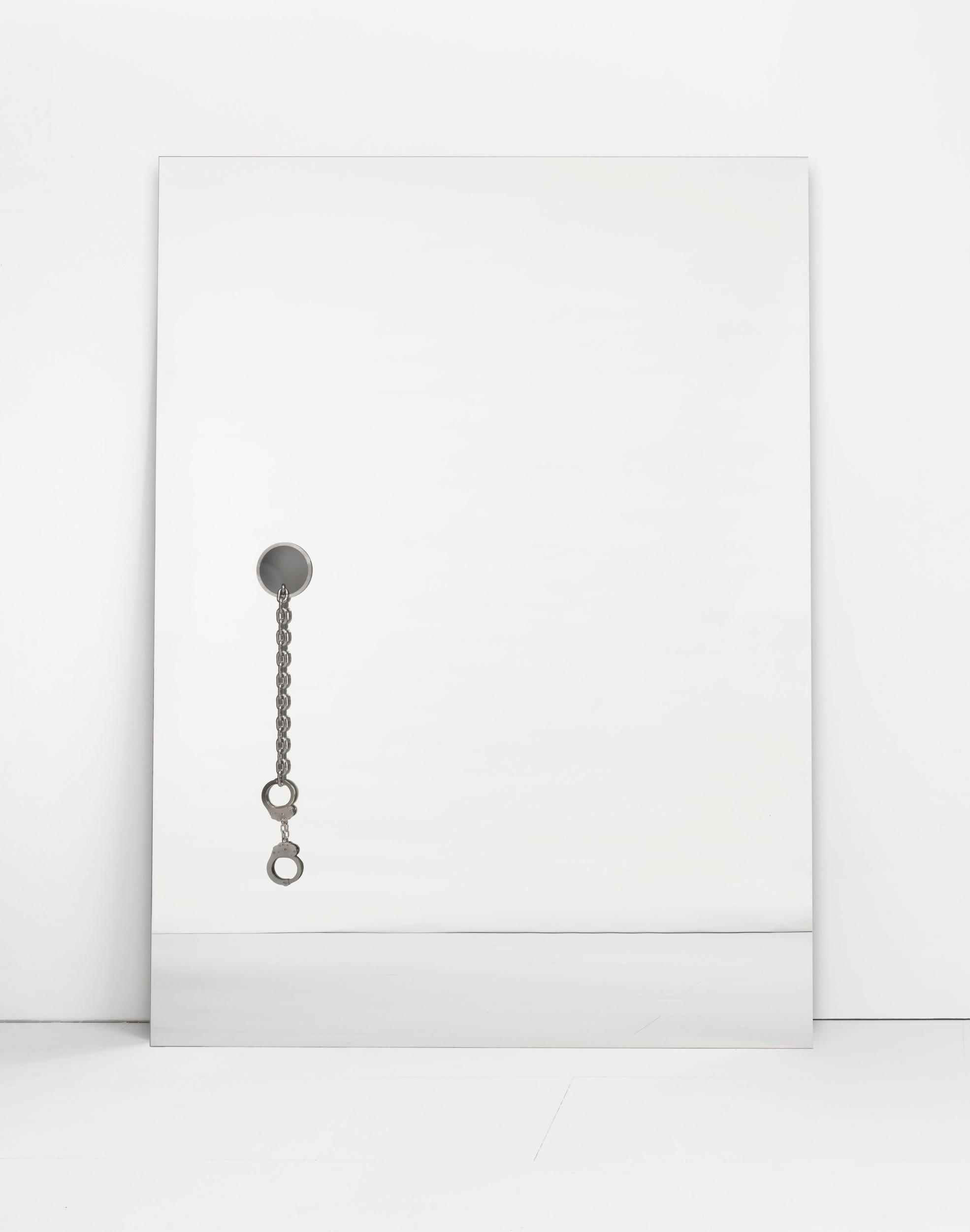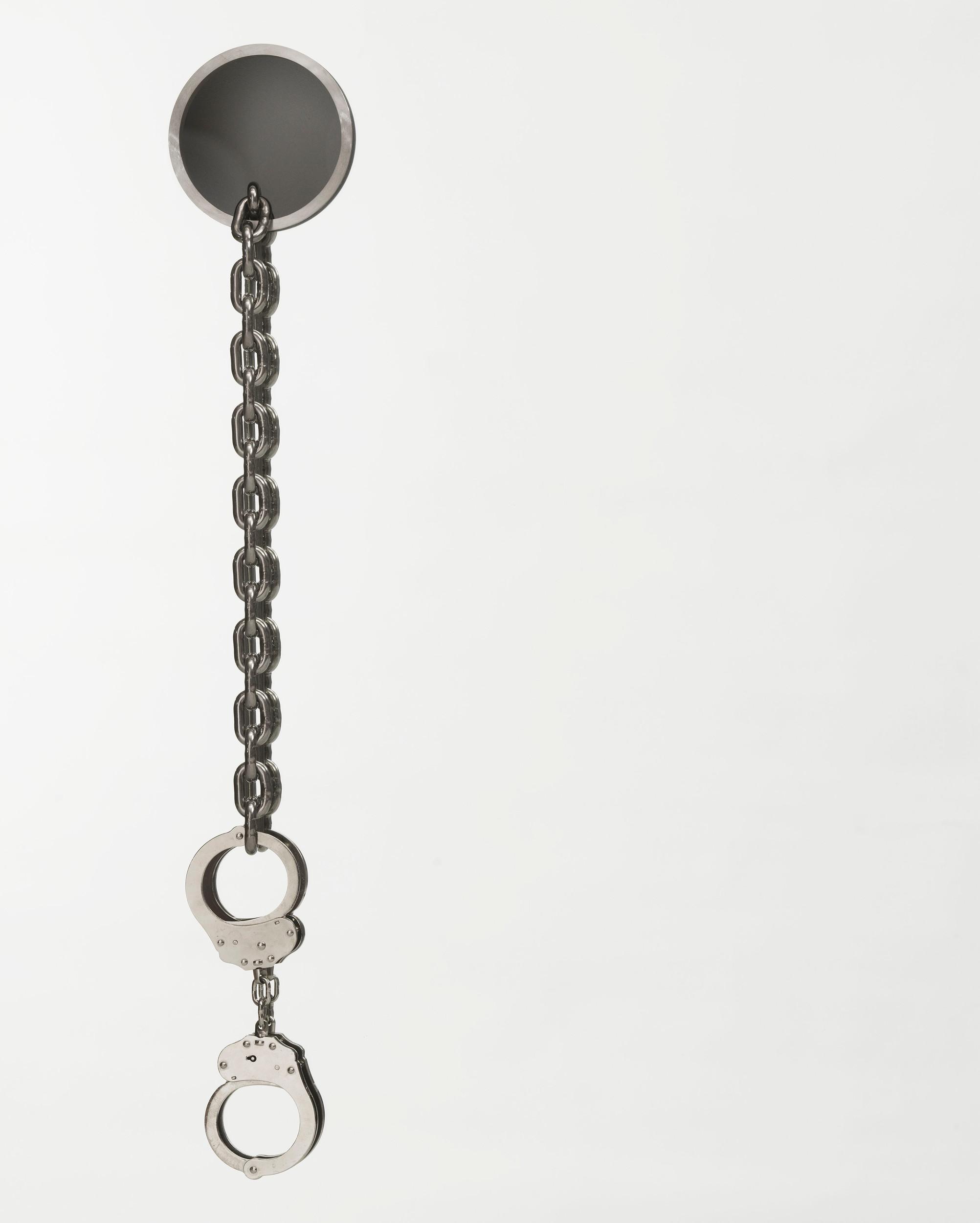 mirror, stainless steel, chain, handcuffs