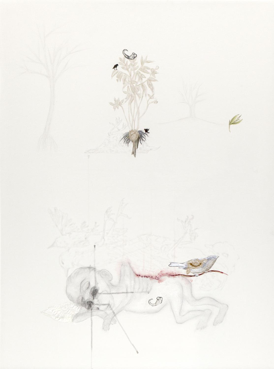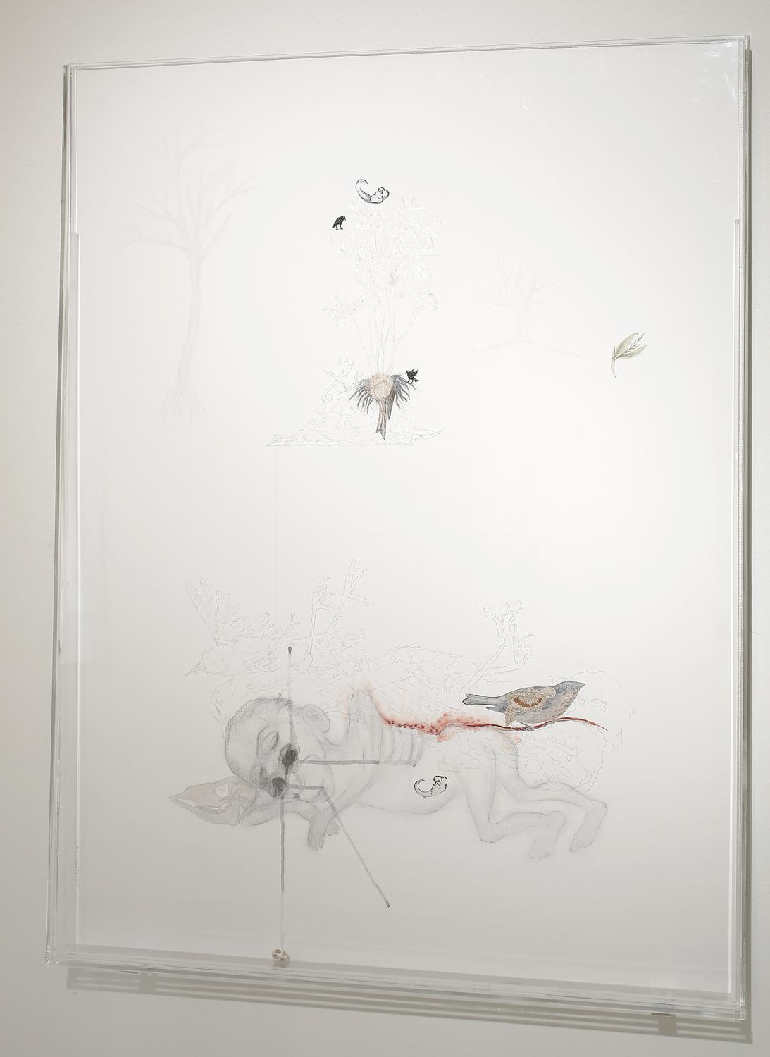 mixed media on paper and hand engraving on acrylic glass