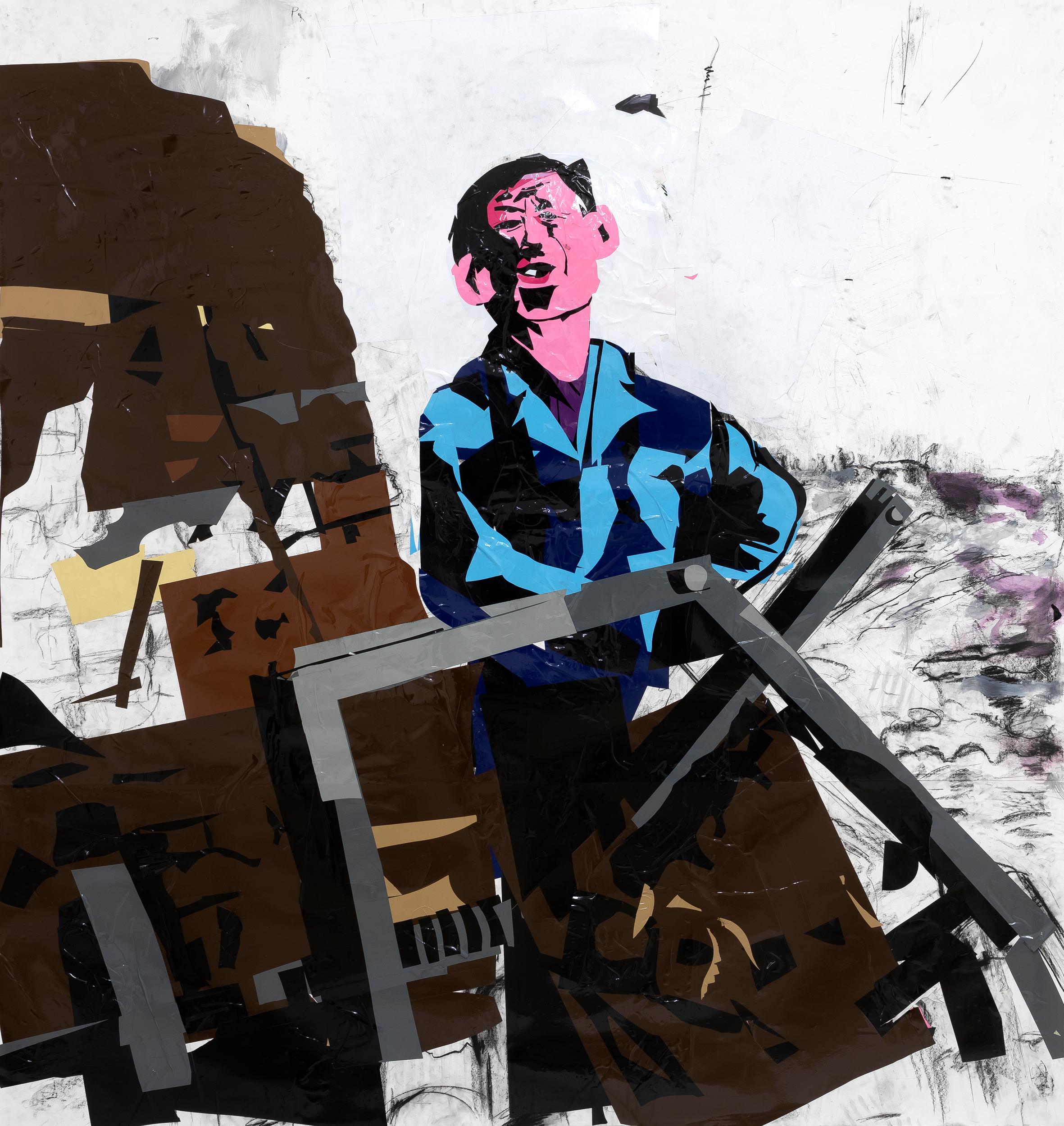 conté, acrylic paint and vinyl on paper
